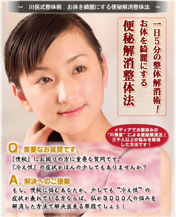 この便秘解消の方法は、根本的な改善の整体の方法です。