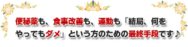 便秘薬を常用している方、雑誌や本で便秘改善の方法を試しても、
